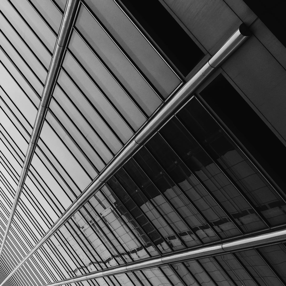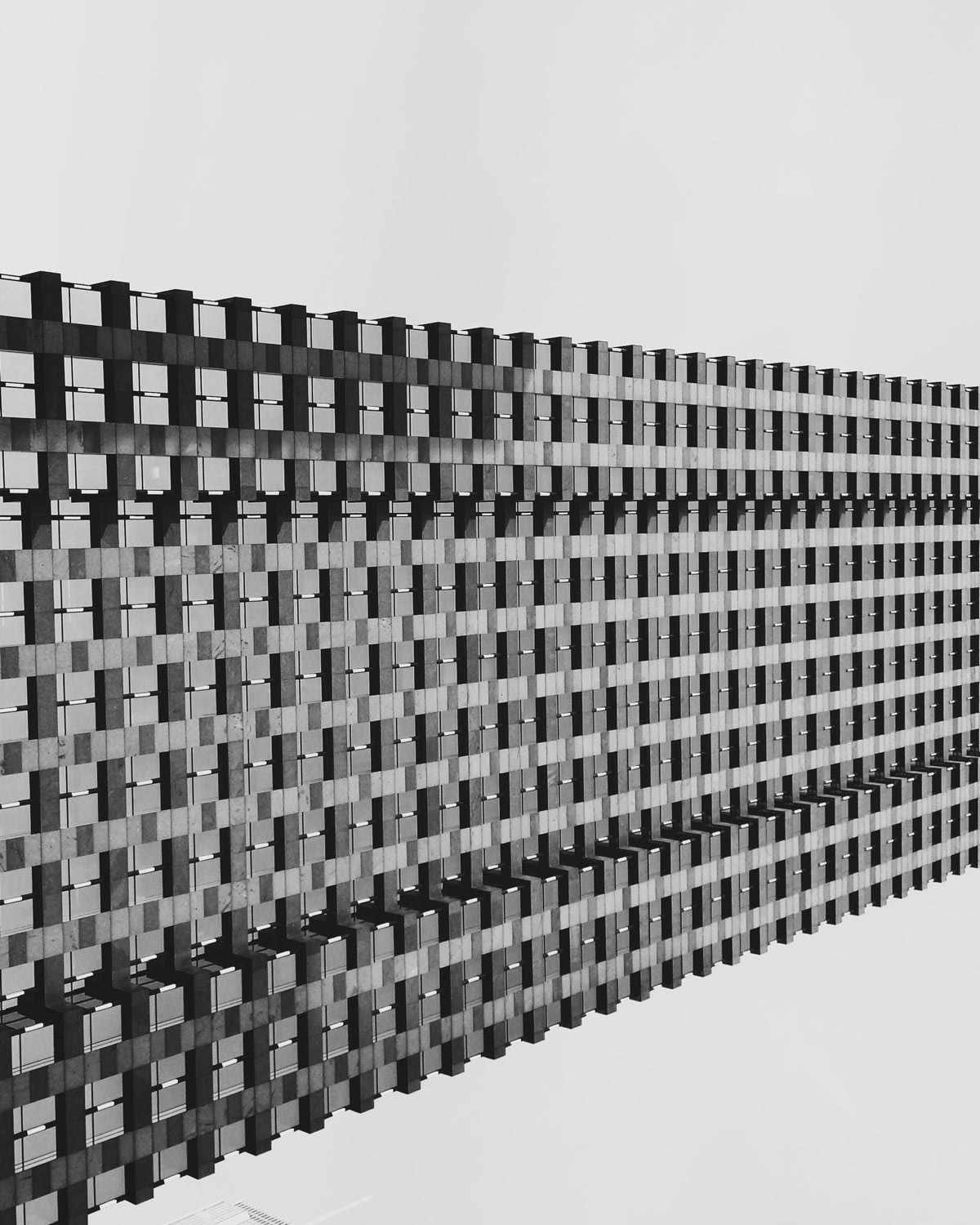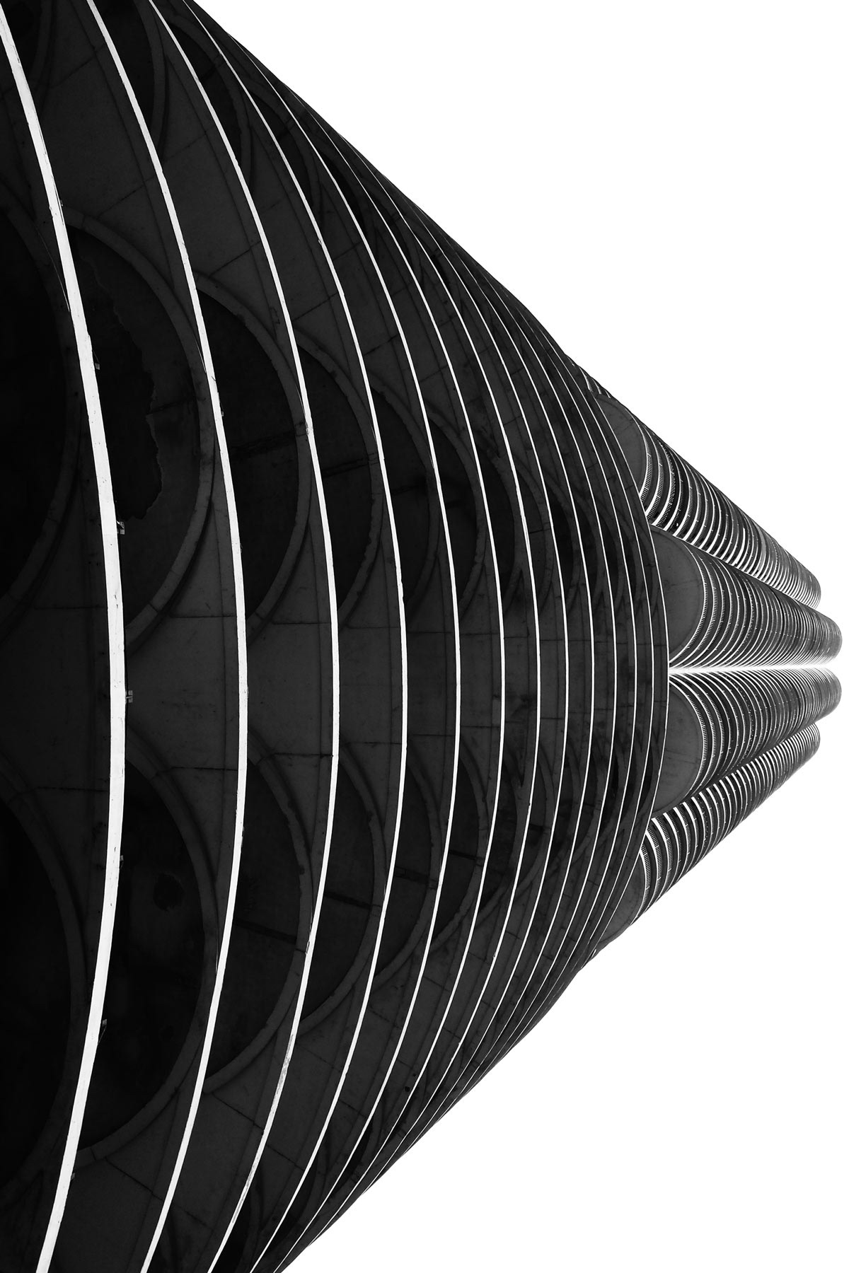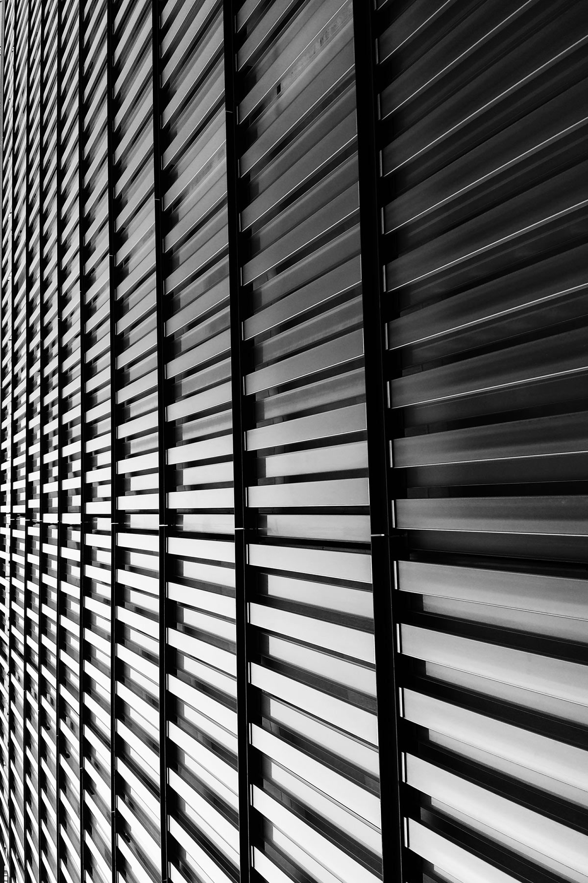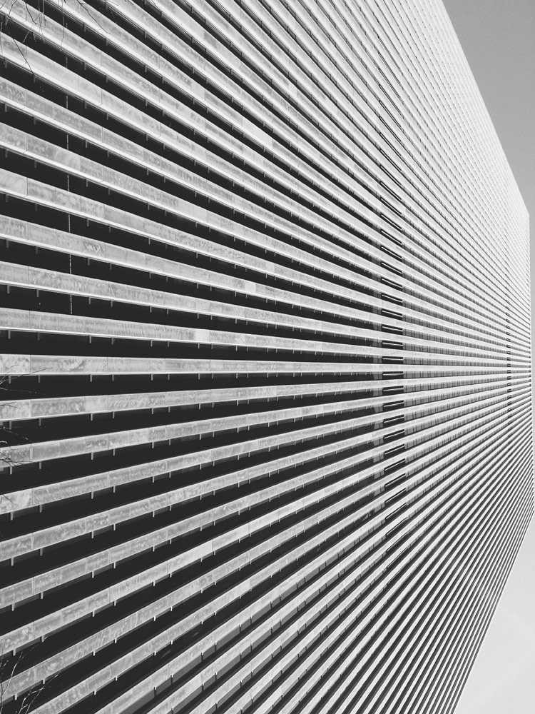 Abstract architecture photography in black and white. Exploring repetition, contrast, and dynamic lines.