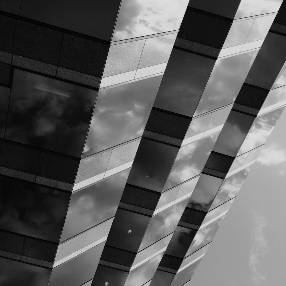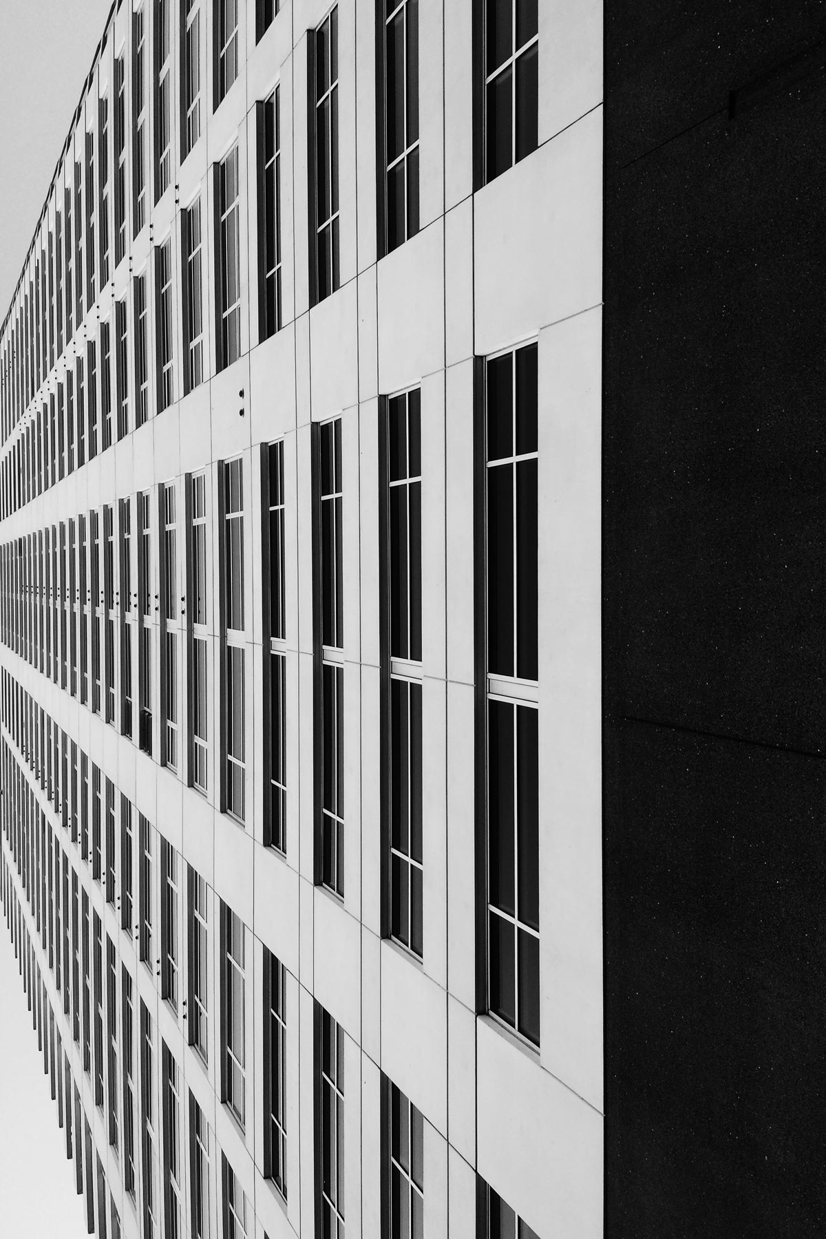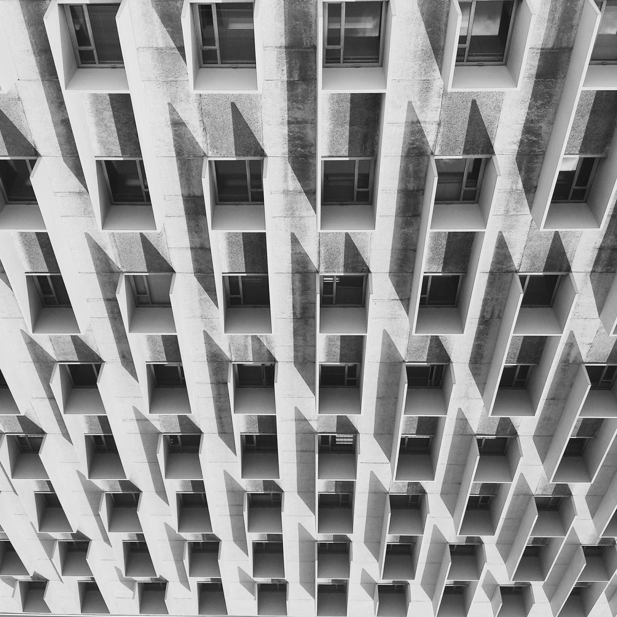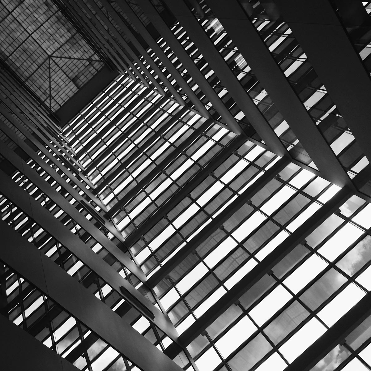 Abstract architecture photography in black and white. Exploring repetition, contrast, and dynamic lines.