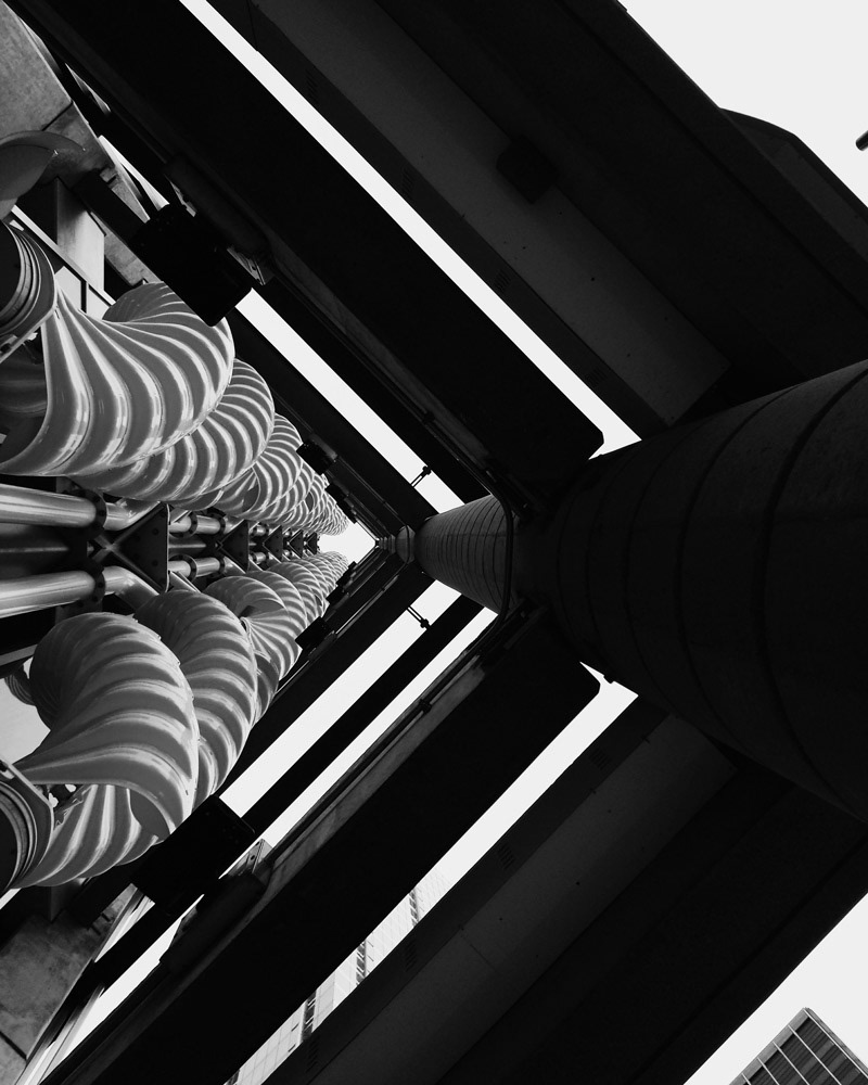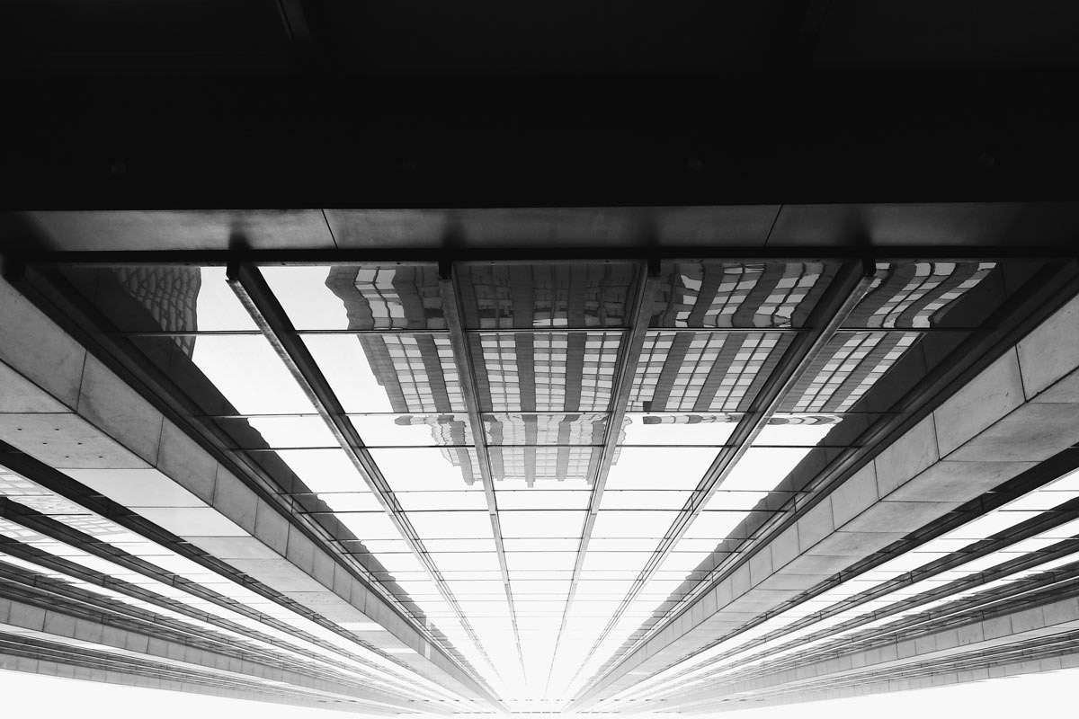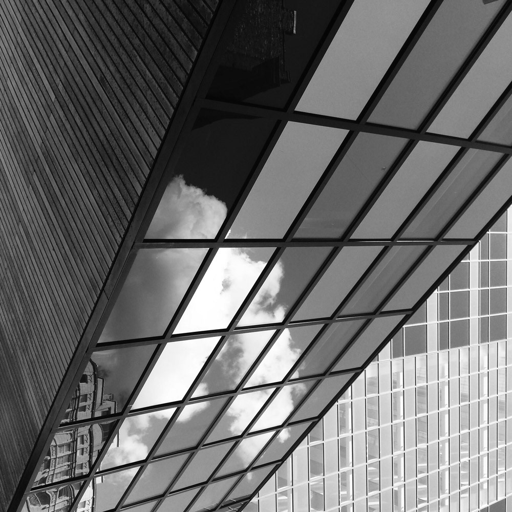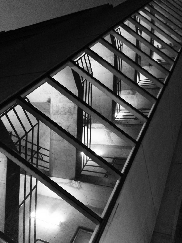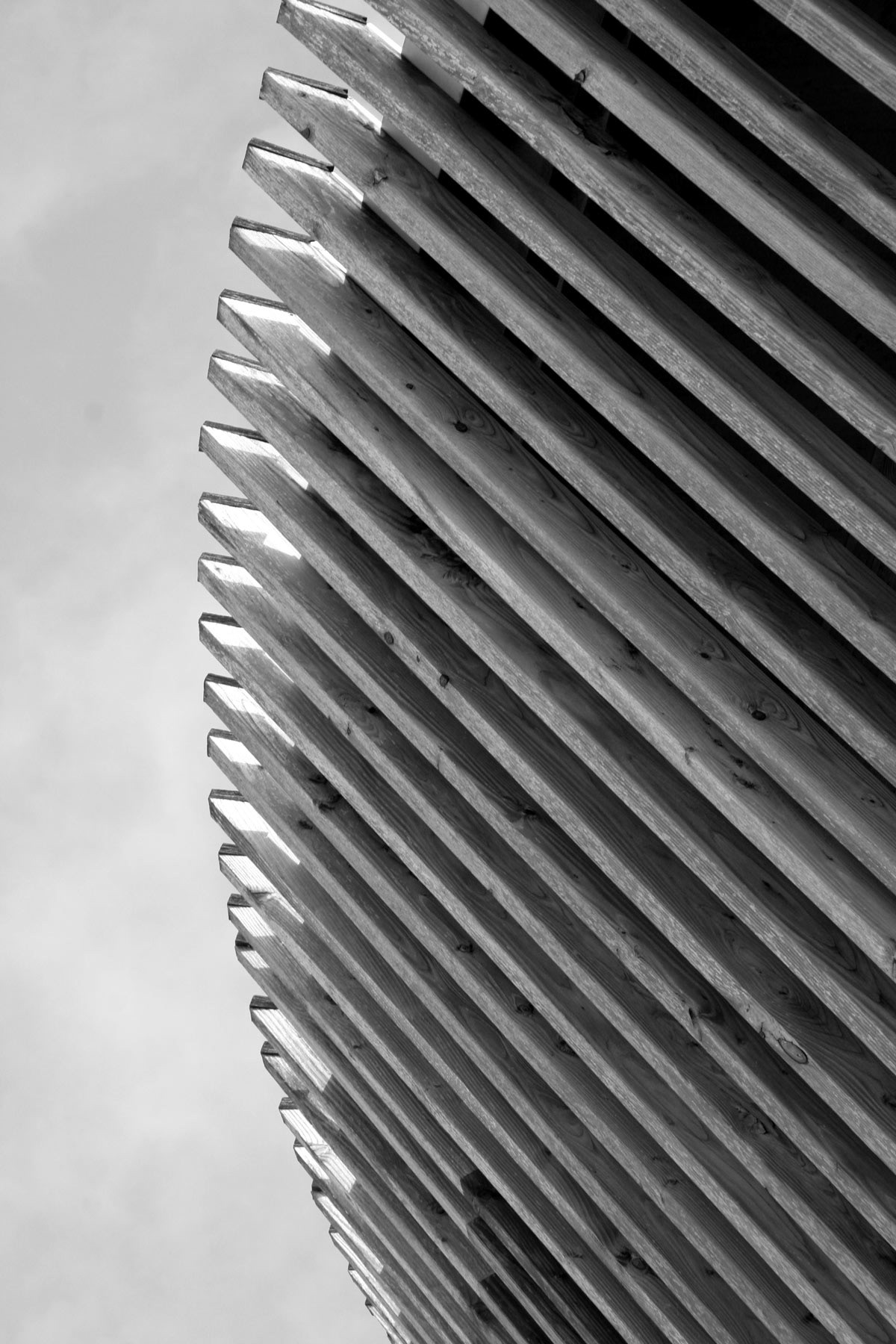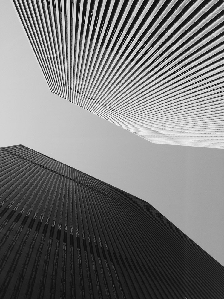 Abstract architecture photography in black and white. Exploring repetition, contrast, and dynamic lines.